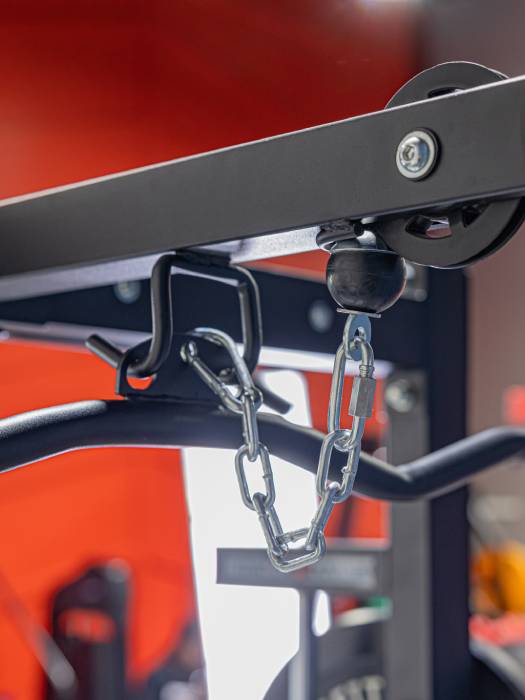 Train like a pro. Integrated lat machine and low pulley give you full cable range to blast your lats, rear delts, and mid-back with rows, pulldowns, and more.