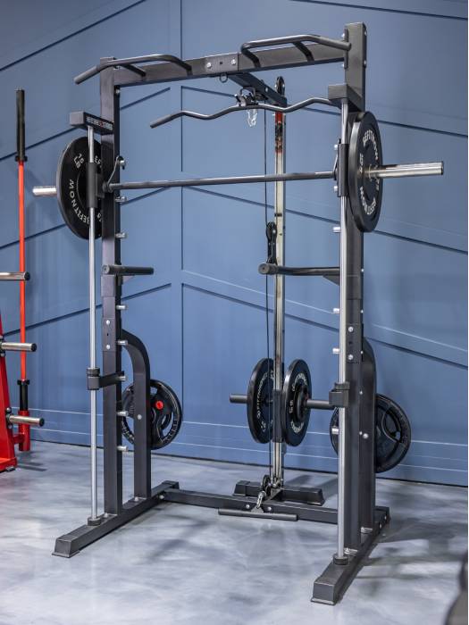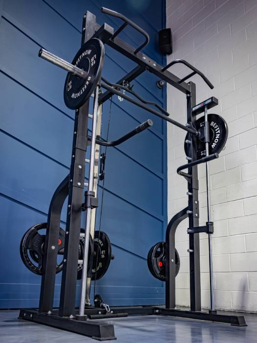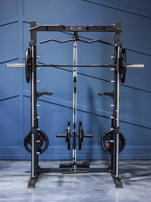 Crush compound lifts with total control. The built-in Smith machine delivers unmatched stability for squats, presses, and serious strength training — without the need for a spotter.