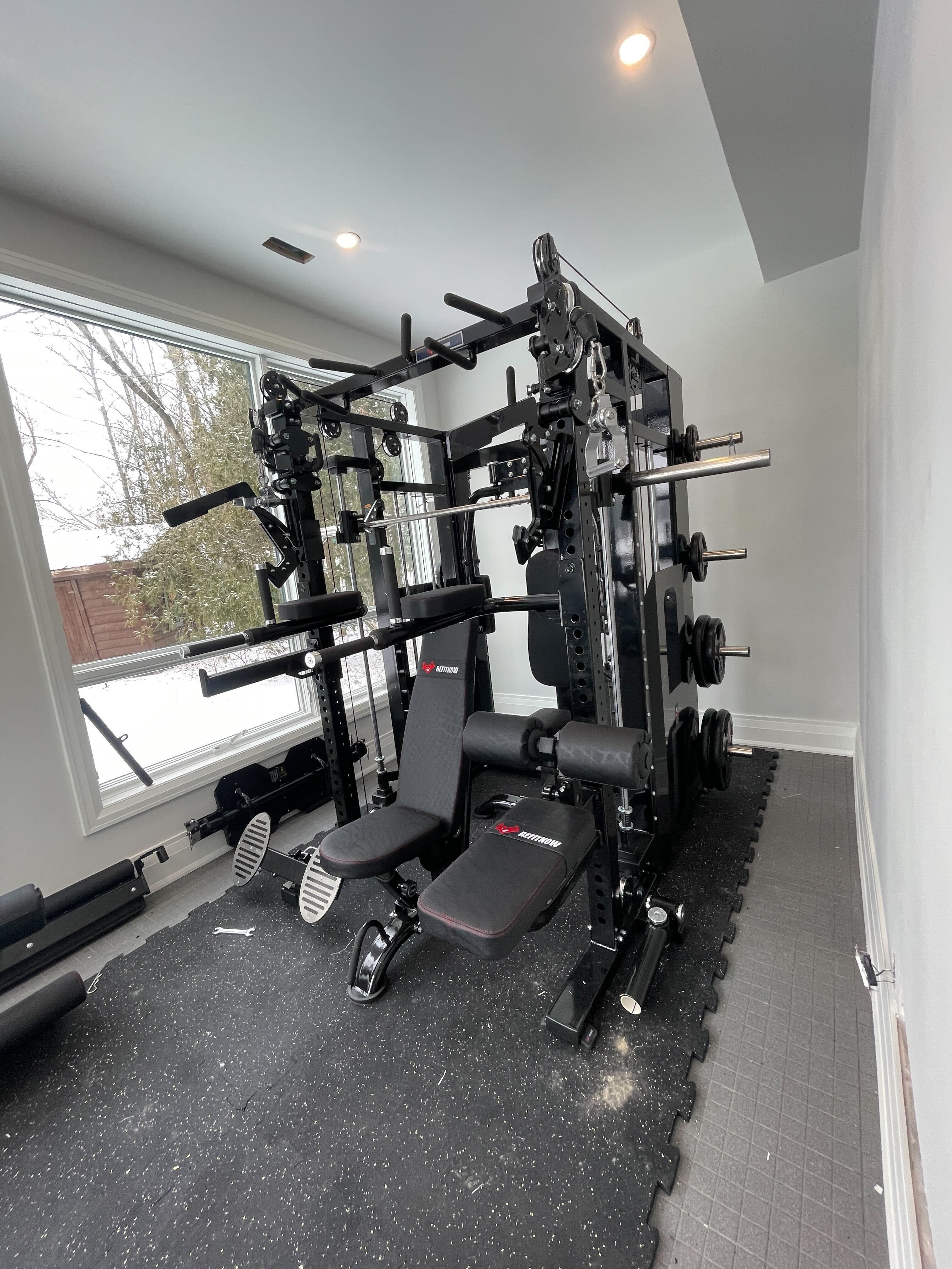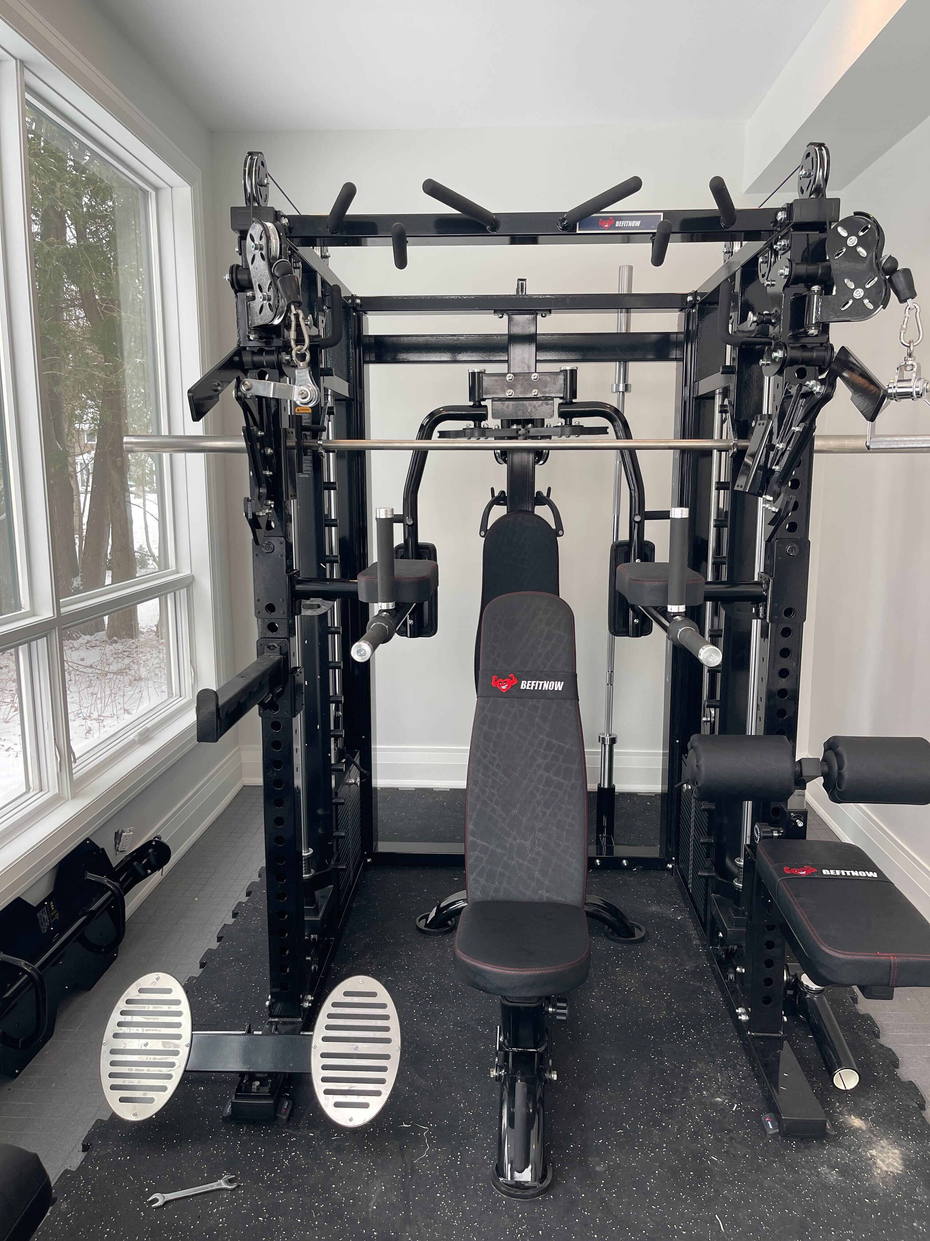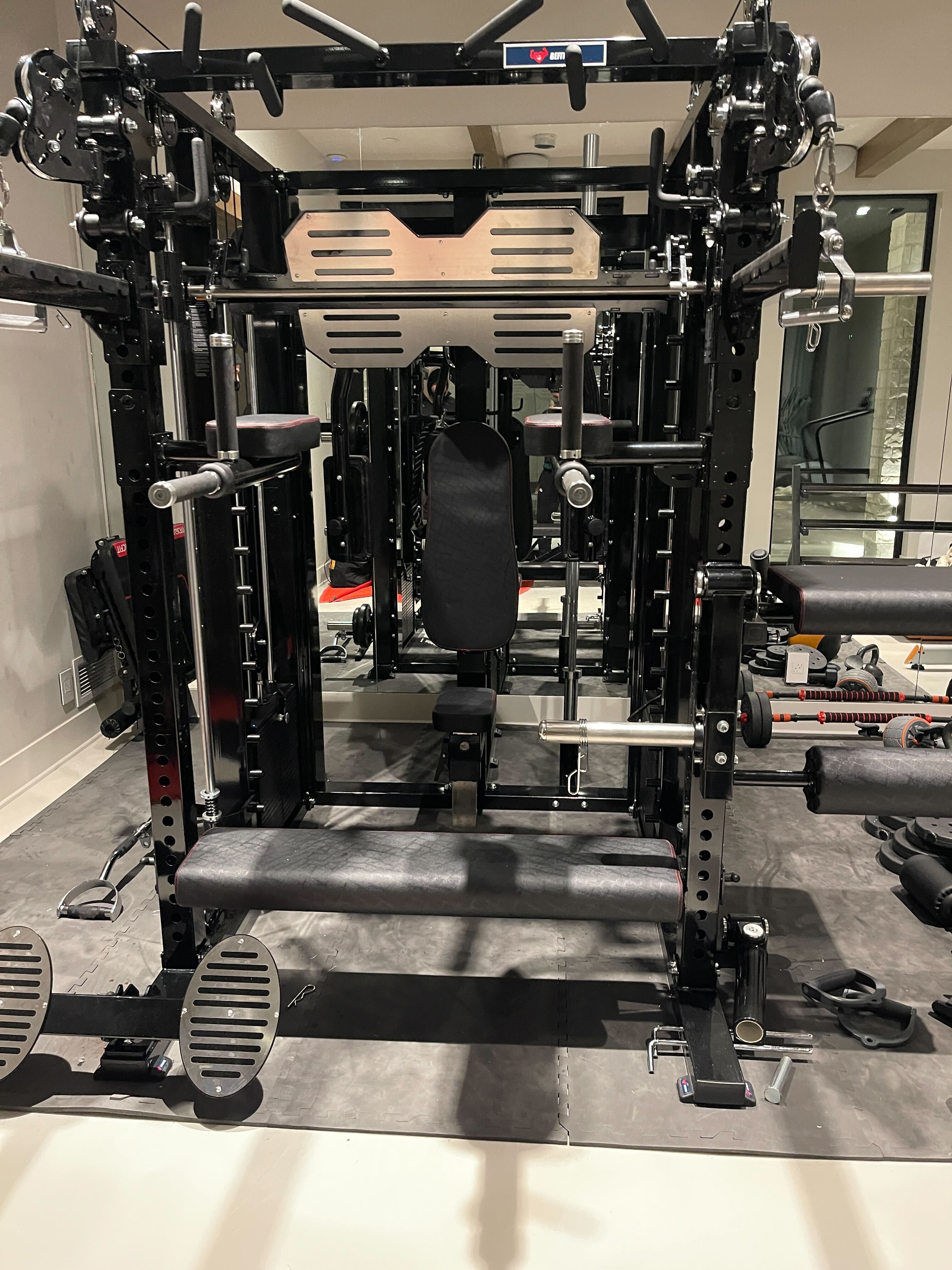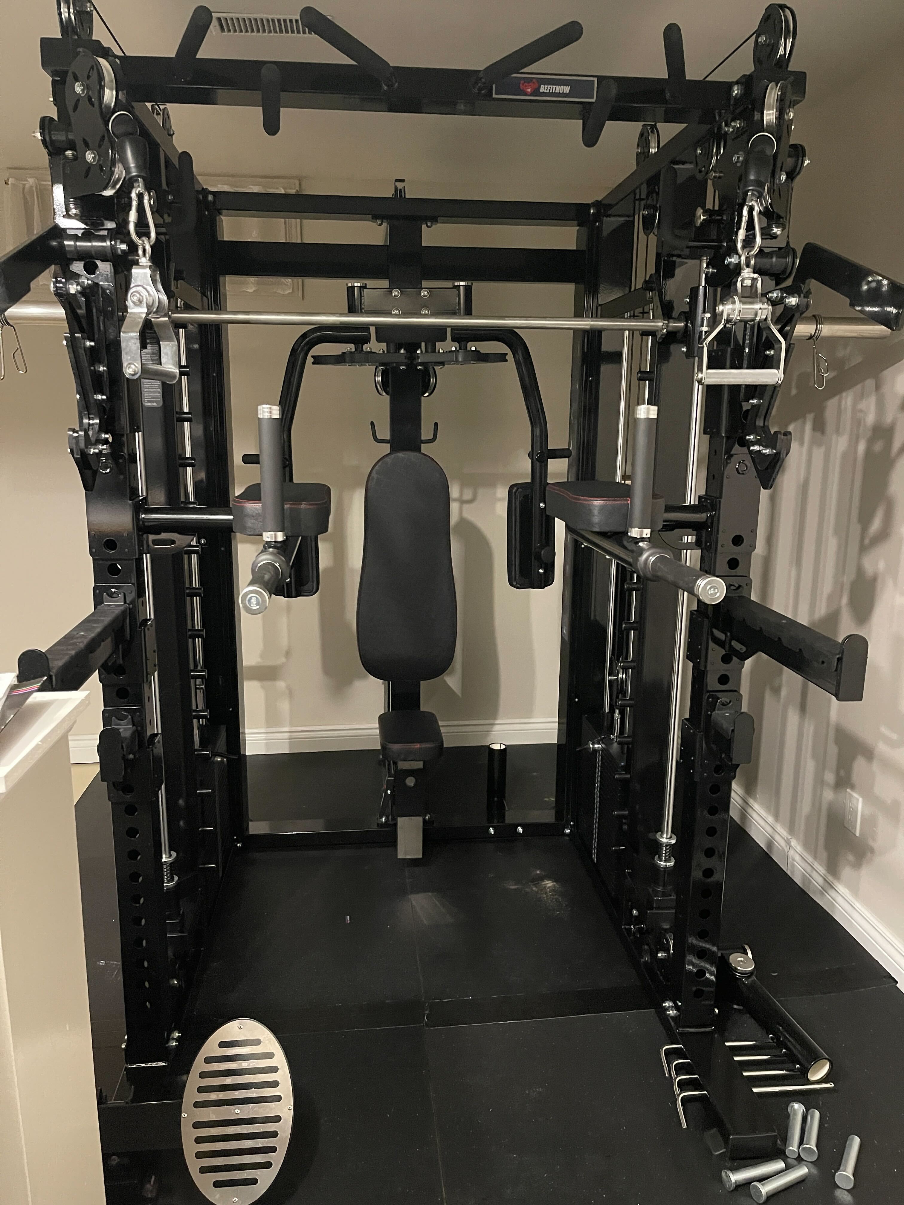Some things to think about: The excellent peck deck is commercial grade, but adds significantly to the footprint. I have a large basement, but be mindful of the additional space needed if you don't. I also wish there were more bar stands (there's one, in back and requires high clearance) and I would love a flat/horizontal bar integrated into the great pullup options already standard. Finally, be sure to plan for commercial floor matting, as this machine is to large and heavy to go on most home floors.